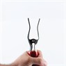 Features sharpened “V” jaw for secure grip and spring return for easy operation