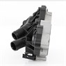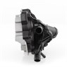 Special design dual thermostats integrated into housing with water pump assembly.